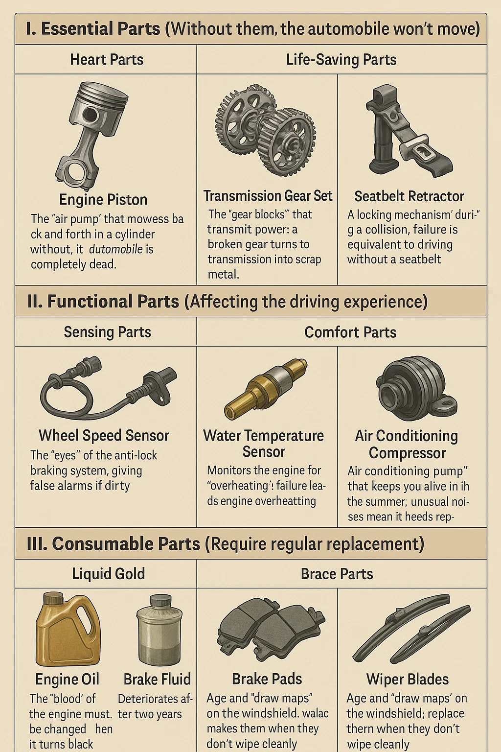 I. ชิ้นส่วนสำคัญ (หากไม่มีมัน รถยนต์ก็ไม่สามารถเคลื่อนที่ได้)